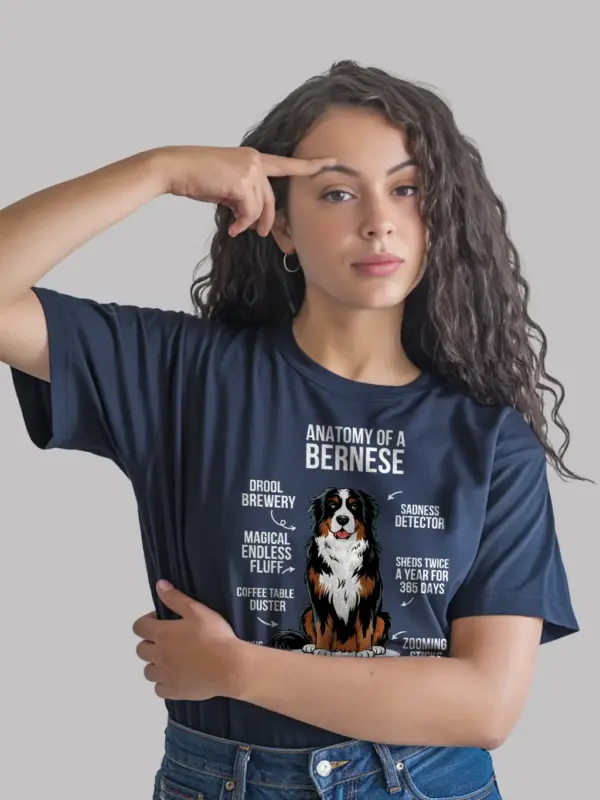Perfect for Bernese owners and fans alike, this Funny Dog Lover Tee blends humor with love for the breed. The large “Anatomy of a Bernèse” title at the top adds a bold touch, while the detailed illustration ensures your love for Berners shines through. Whether you’re heading to a dog event, relaxing at home, or looking for the perfect Gift for Dog Moms and Dads, this comfy shirt has you covered.