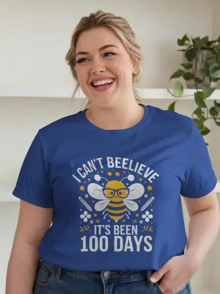 Made with soft, breathable cotton and available in unisex sizes S to 3XL, the I Can’t Beelieve It’s Been 100 Days Shirt comes in Black, Dark Heather, Navy, and Royal Blue. It’s designed for all-day comfort and school spirit. A perfect gift for bee lovers, pun fans, and educators who enjoy celebrating classroom achievements with humor and style. Wear it proud, and let the buzz begin!