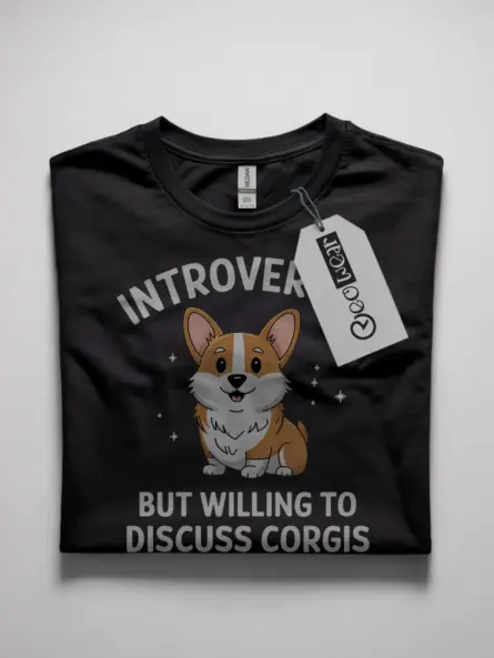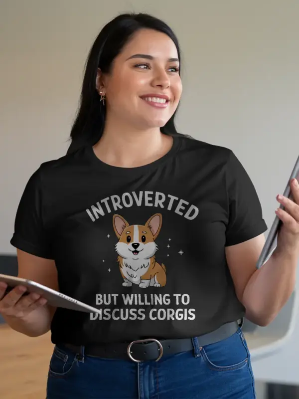 Show off your introverted side with this Corgi-themed tee! Perfect for any Corgi lover or introvert, with the playful text, “Introverted But Willing to Discuss Corgis Shirt”