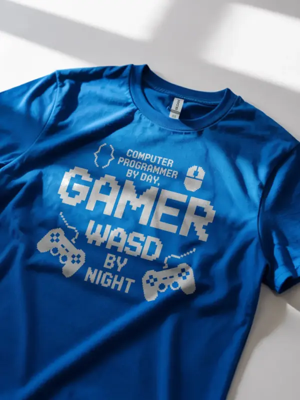 Looking to shop for a funny dual identity programmer gamer shirt? This one hits the mark. The retro 8-bit gamer t-shirt for coders is soft, breathable, and available in sizes S to 3XL in four gamer-approved colors: Black, Navy, Dark Heather, and Royal Blue.